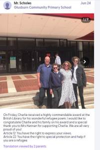 Members of The Rights Respecting Team receive the School of Sanctuary Award.